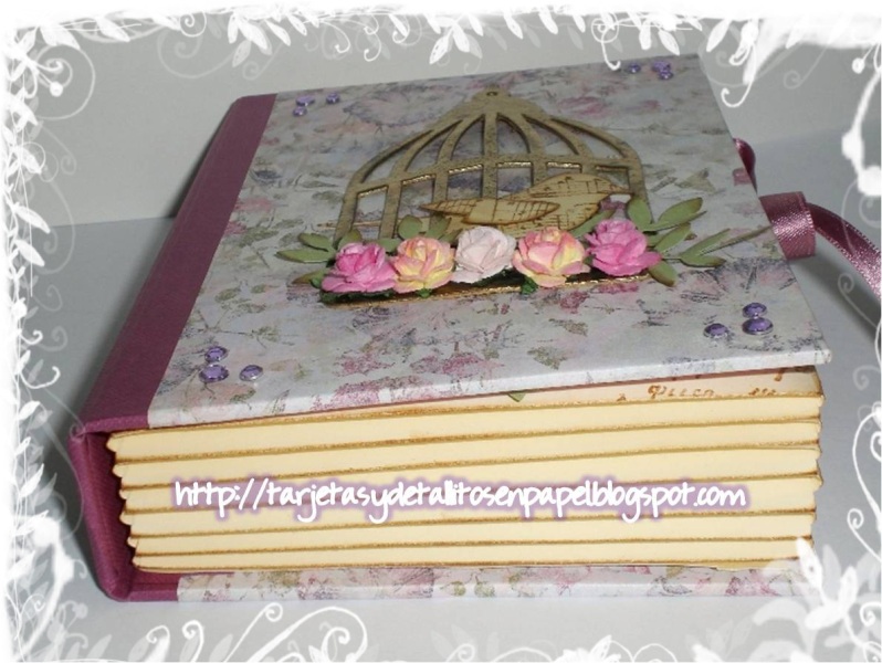 Cuando vi este modelo que ha sido repetido infinitamente en la web, no lo dudé en realizar. Por lo general no sigo tutoriales de proyectos, sólo de técnicas, pero este me gustó muchísimo porque es un libro!....ya saben la adicción que tengo últimamente por ellos. Los colores que he eligido para este regalo han sido los que le gustan a María: lila y sus combinaciones.