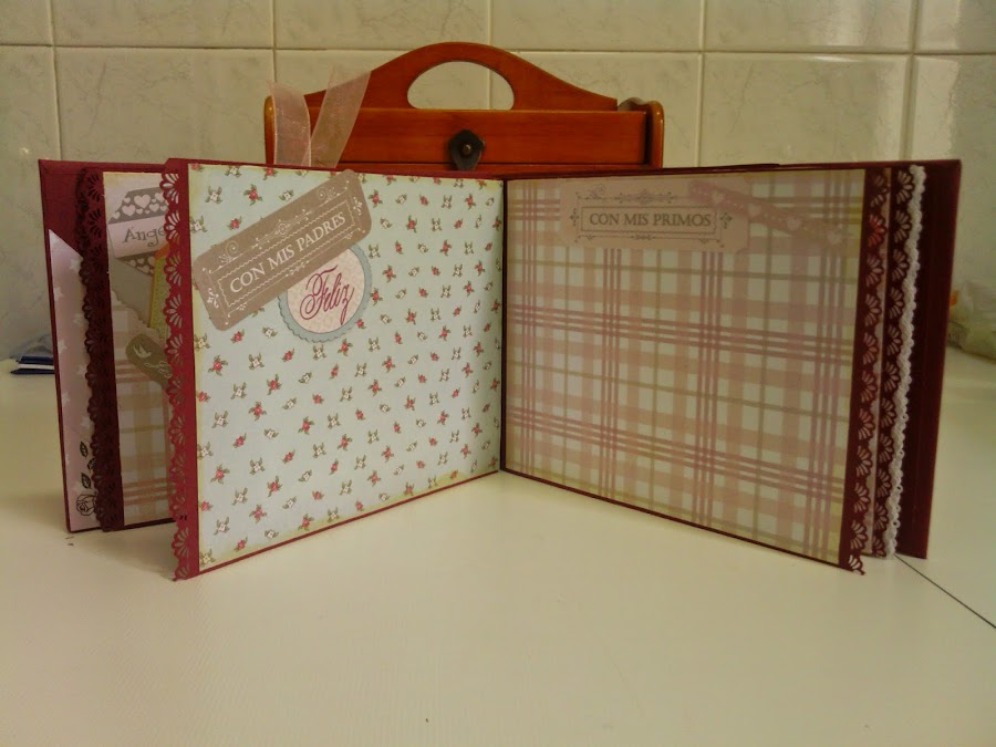 En las hojas siguientes (de color) he dejado espacio para distintas fotos (con los padres, con los primos,....). También he incluído en una de esas hojas una "cascada" para poner varias fotografías.