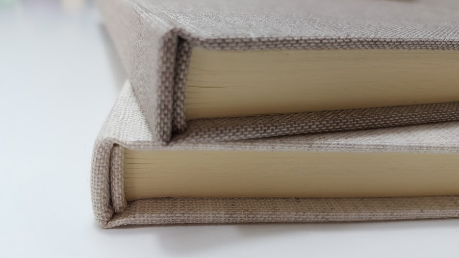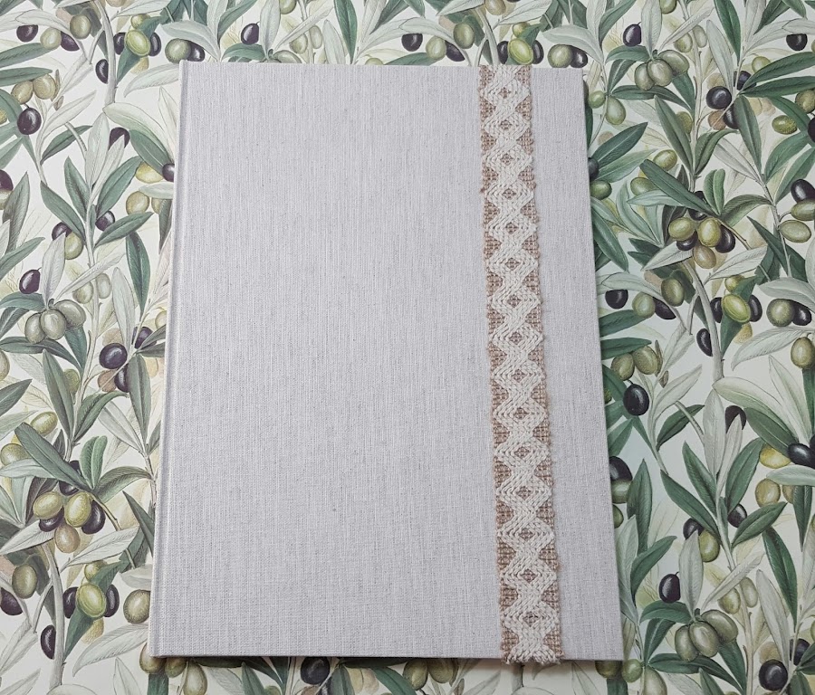 Tapas cubierta en lino beig y marrón.