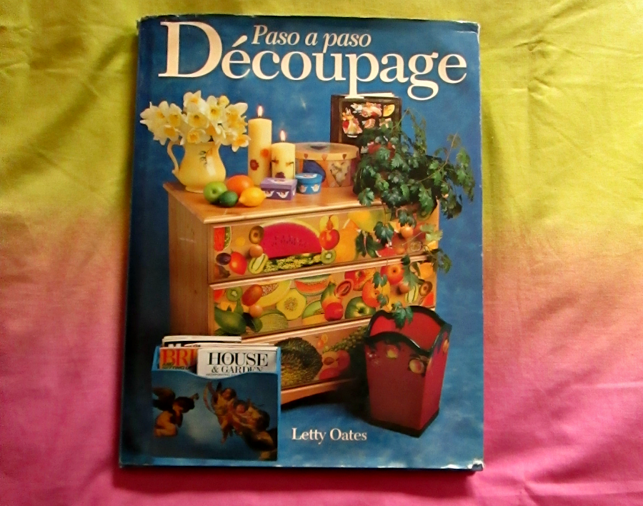Y de la misma autora que el anterior, tenemos uno llamado Decoupage paso a paso. Ni que decir tiene que son proyectos sobre decoupage, con recortes de revista, de periódico, con cromos... etcétera.