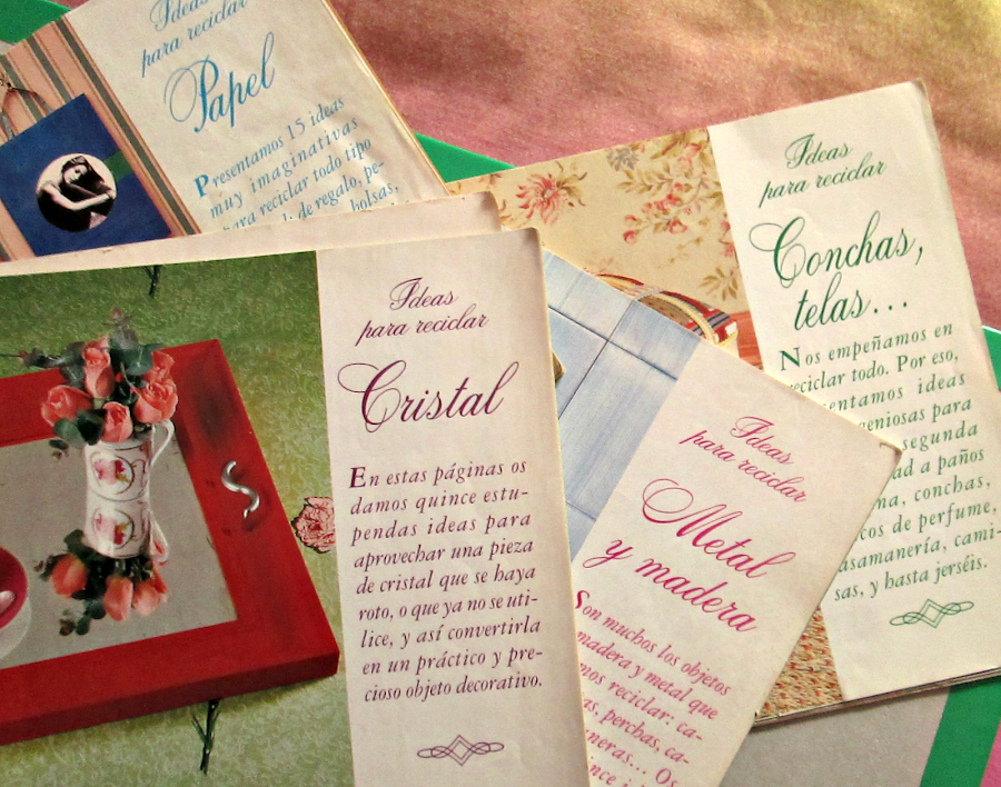 El primero de todos y por ello mi favorito, es un pequeño coleccionable de la revista Mi Casa sobre reciclaje. Esta ordenado por cosas a reciclar, de modo que hay una sección de papel, otra de cristal etc. Este libro me ha inspirado mucho, además de pasarme horas y horas pasando sus hojas.