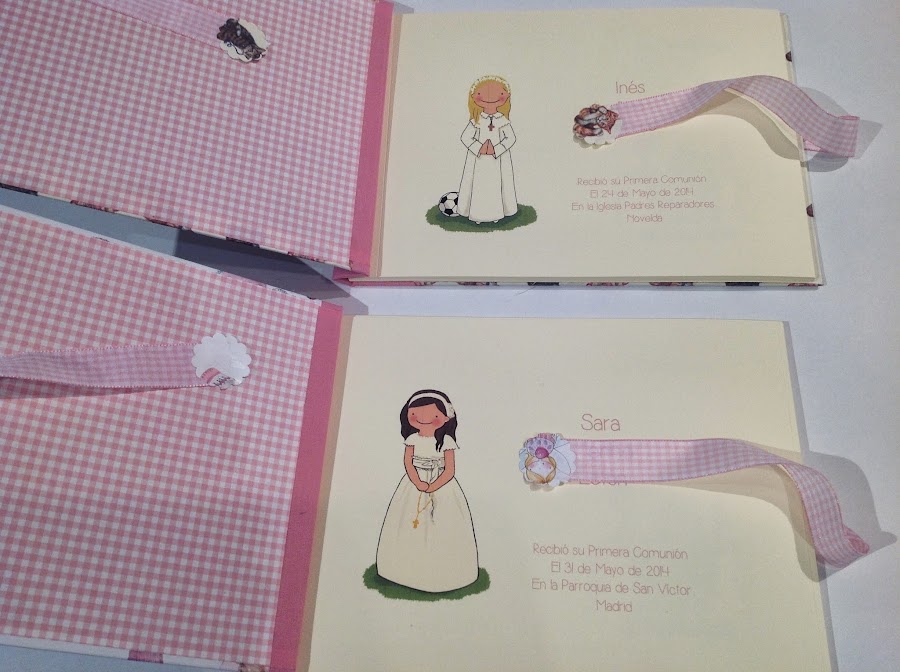 Libros para la Primera Comunión de Sara e Inés, realizados en colaboración con Princess Nora