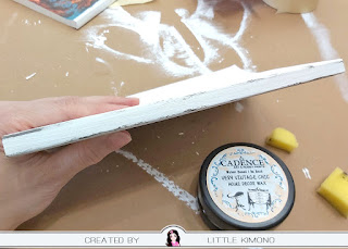 Y como las semanas anteriores para lograr este efecto de "maderas envejecidas" vamos a usar la pintura a la tiza blanco nieve de amelie y la cera negra de Cadence para dar ese efecto rústico desgastado.