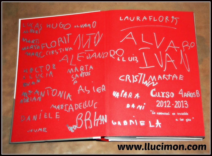 Es una versión "cara" del libro, pero como era un regalo para hacer conjunto toda la clase no se salía del presupuesto. Además, como algunas partes también querían que hubiera un regalo más "material", con el resto del dinero recaudado se le compró un reloj de pulsera.