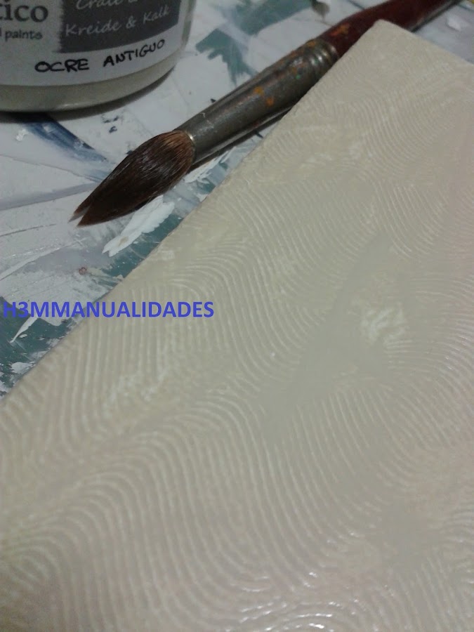 Una vez seco, pasamos a la pintura. En mi caso pintura a la tiza. Las pinceladas las di perpendiculares a las ondas, de manera que la pintura queda algo almacenada en algunas zonas, en los surcos.