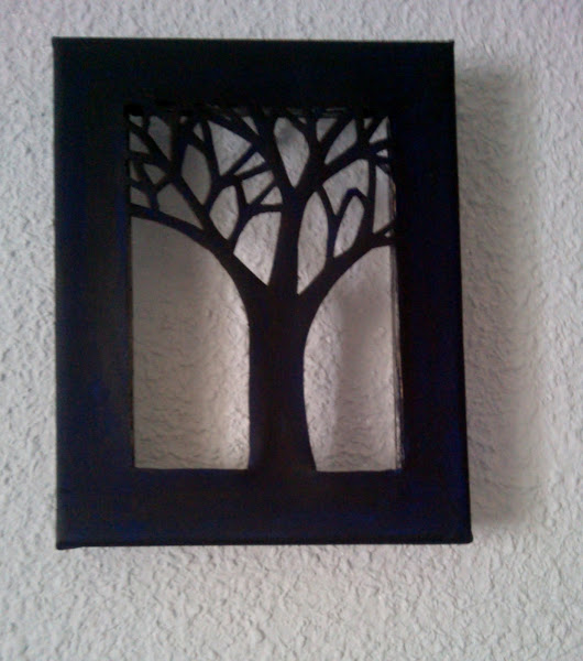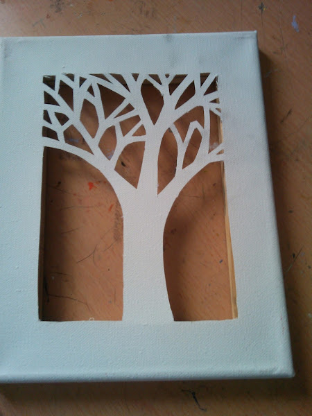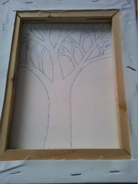 Empezaremos dibujando en un papel un árbol, que después calcaremos por la parte de atrás de nuestro lienzo.