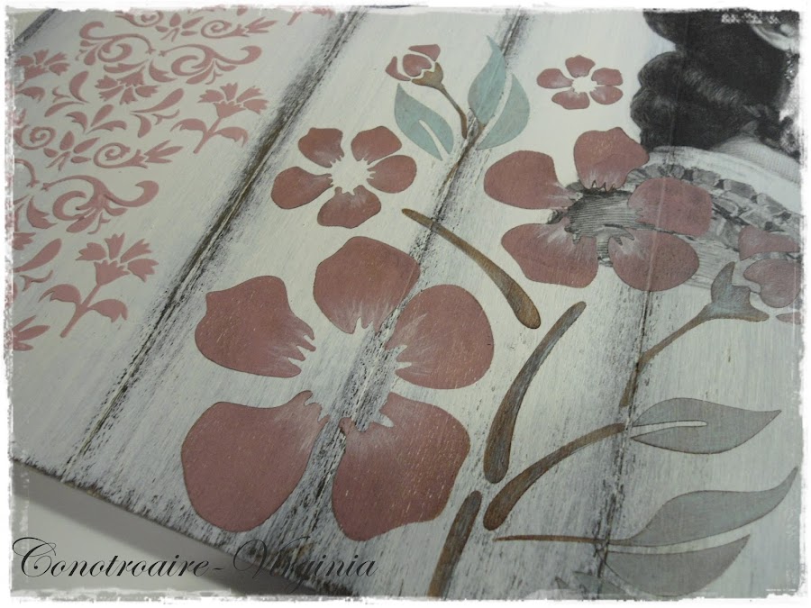 Toda la parte de abajo, el motivo floral, esta hecho con stencil.