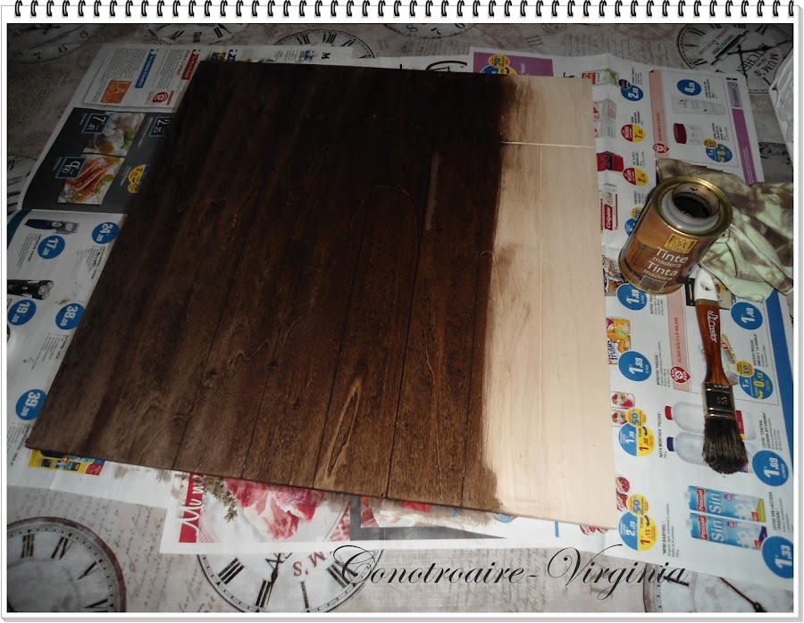Es un tablero de contrachapado de okume, al que previamente le hice unas rayas con un punzón....