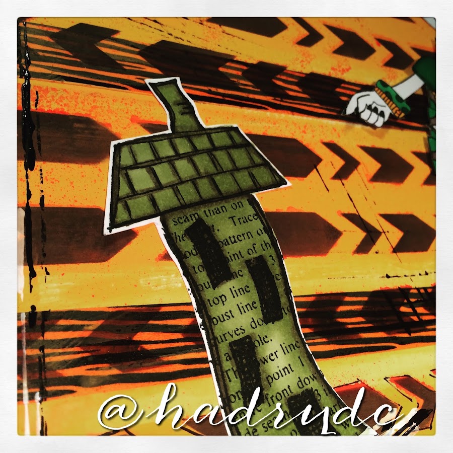 La página que he hecho es para el reto del grupo de FB, The Dylusions FB Challenge, en el cual los requisitos para el mes de febrero eran usar naranja y flechas.