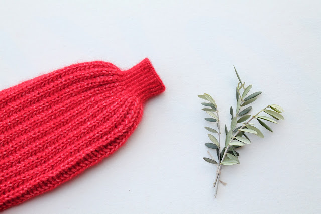 As I was really eager to knit it, I have been almost the whole year investigating and nosing around models knitted by other people to choose the colour and at last I opted for a bright red tone which in "Snefnug" by CaMaRose skeins is really pretty.