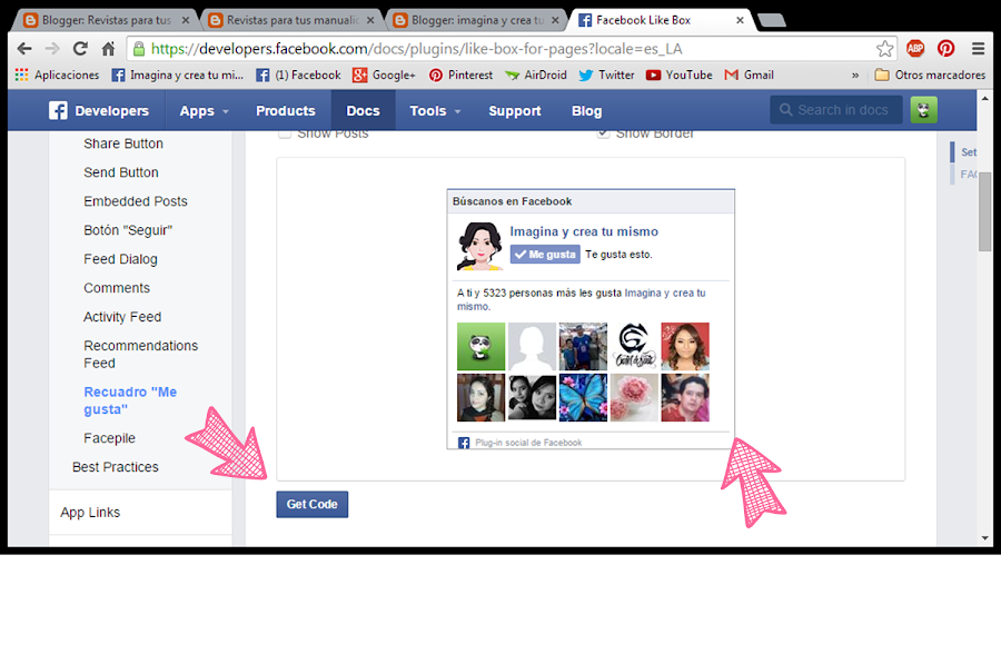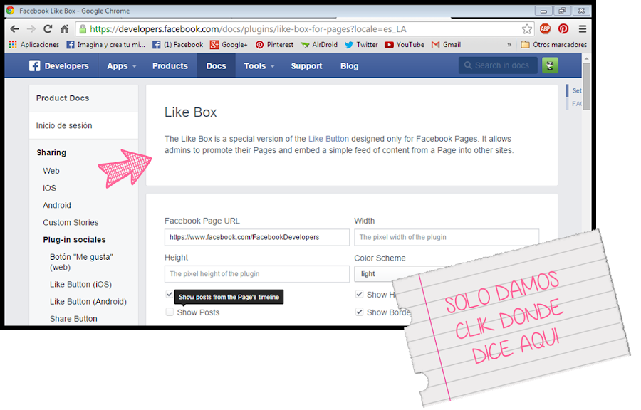 Facebook, al igual que la mayoría de redes sociales, dispone de una serie de herramientas e información para desarrolladores estos son los famosos developers, Para añadir la cajita de los likes nos vamos a dirijir a esta direccion AQUI.