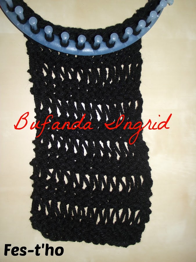 En telar rectangular. Me los compré todos, del más pequeño al más grande, y solo he hecho ésto. Pero que conste que he empezado muuuuchas cosas (aun que no haya terminado nada).