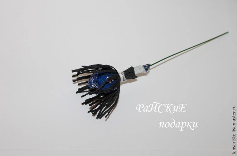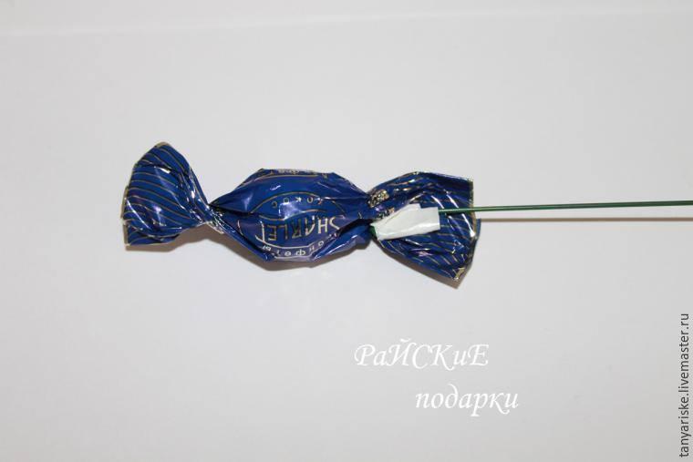 Primero fijamos el bombón en un extremo del futuro tallo de la flor.