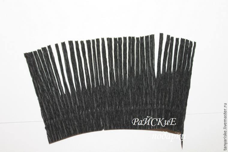 De una tira de papel crepé negro preparamos el centro de nuestra centuria.
