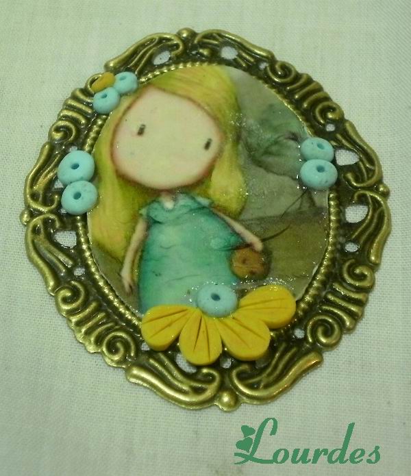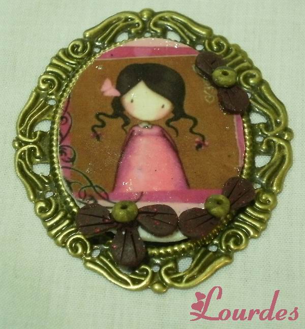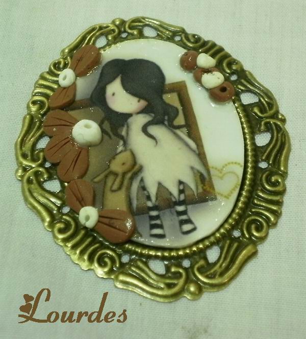 Camafeo en oro viejo con transferencia. Adornos en AP en marrón y blanco