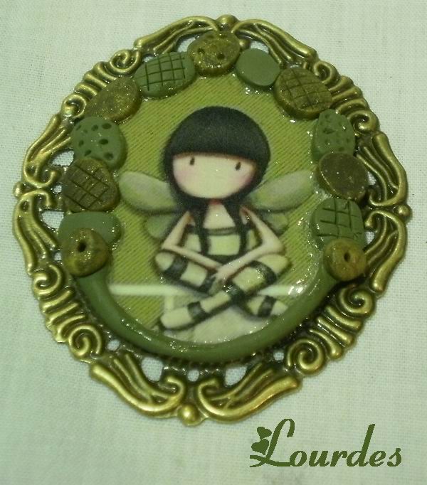 Camafeo en oro viejo con transferencia. Adornos en AP en verde y oro viejo