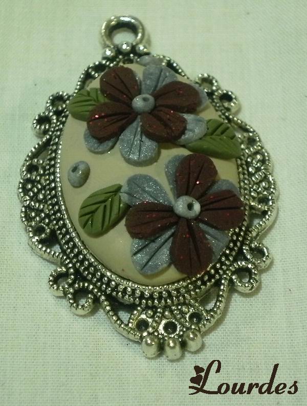 Camafeo plateado con transferencia.Adornos en AP en granate y blanco