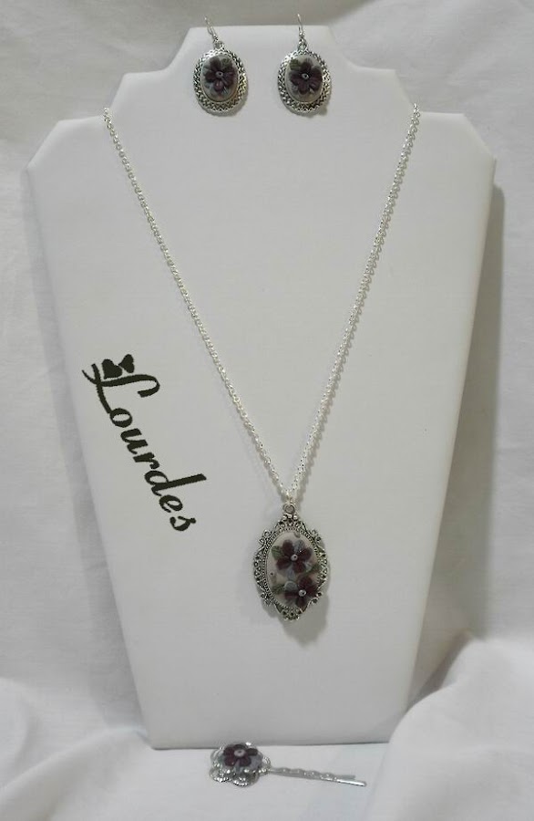Camafeo plateado con transferencia.Adornos en AP en granate y plata