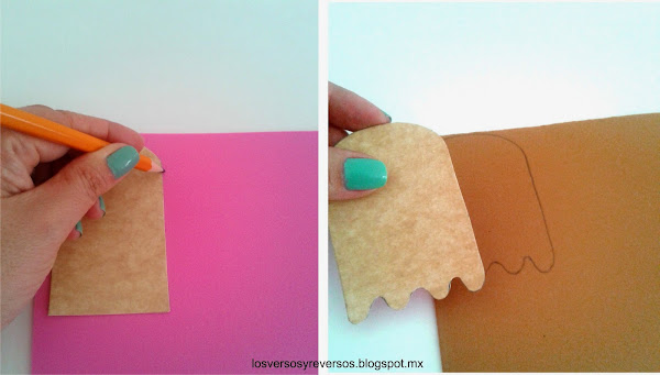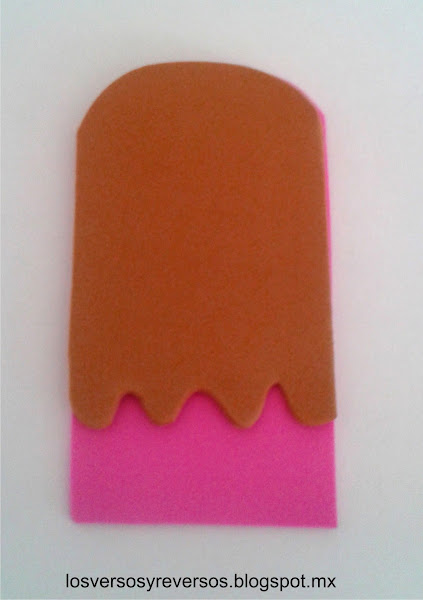 Haz unos moldes del tamaño que quieras para hacer tus helados. Yo hice dos, uno con la forma completa del helado y otro igualito nada más que con unas onditas en el extremo. Pon los moldes en el fomi del color que quieras y recortalos.PASO 2