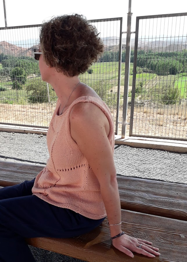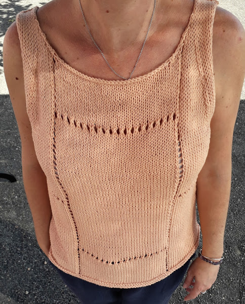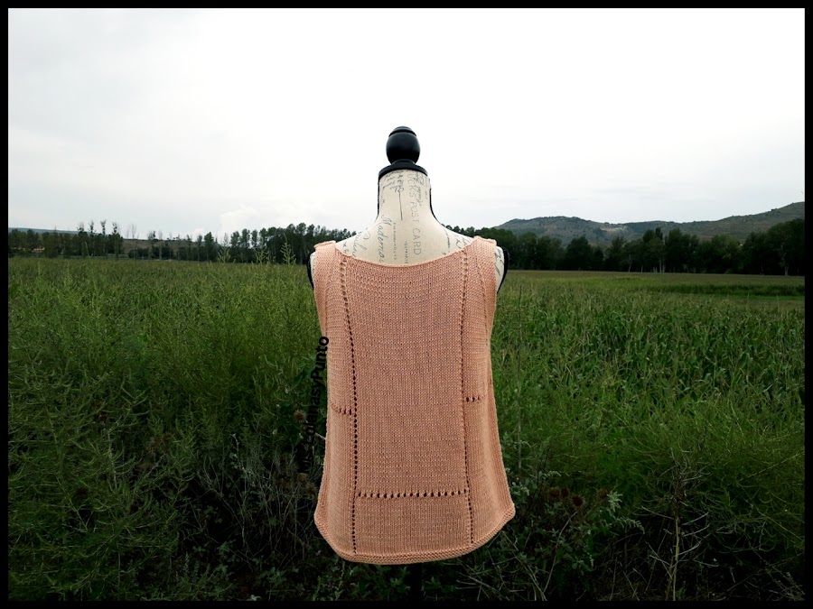 Como podéis ver, es un top a punto jersey, que combina junto al punto calado.