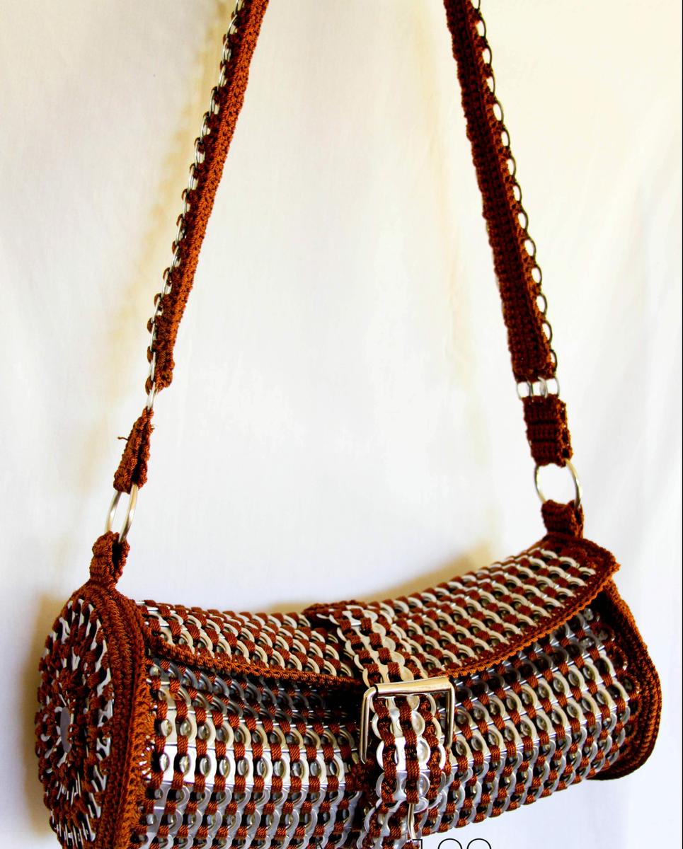 Esta bolsa es un diseño de Maria Luna. Se puede hacer con anillas de un solo agujero como las de Monster, Budweiser, Redbull, etc. Los invito a checar la página de Maria Luna en Facebook donde nos m ...