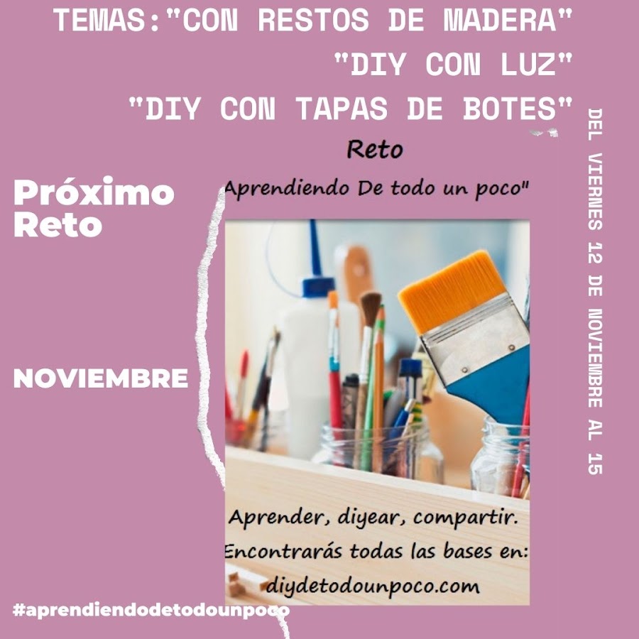 Pense que ya no alcanzaba, pero aqui estoy participando en el DIY De todo un poco de Anna Llansa. Los temas del mes son: Con restos de Madera, DIY con luz y DIY con tapas de botes, todos propuestos por las ganadoras del mes anterior Cristina, Anna y Nuria.