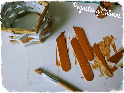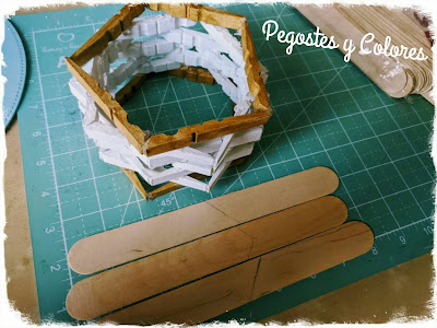1.- Ir al enlace Linterna con Pinzas de Ropa de Madera, para que veas las instrucciones sobre como la arme. Aqui la diferencia es que hice la linterna de 7 niveles. El primero y el ultimo los pinte de un tono Inca Gold, luego dos niveles de blanco tanto abajo como arriba y el nivel de enmedio de tono Royal Gold.