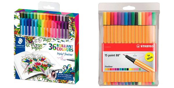 Compré hace poco los 36 rotus de de STAEDLER para colorear (de una forma u otra hay que sacar el estrés, jejeje) y me vienen genial para mi Bullet Journal. Si te parece mucho, y solo vas a escribir con ellos, también están disponibles en paquete de 10 unidades.