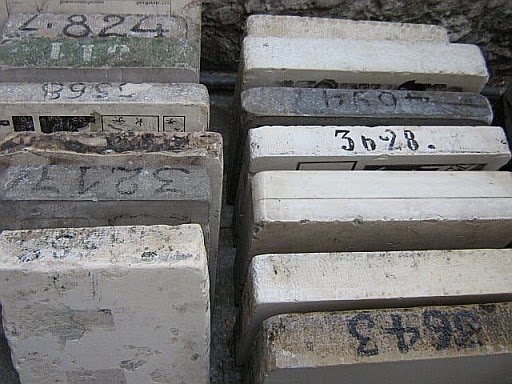 Piedra empleada para litografía. (Motivo: fachada de la Universidad de Princeton).Para este tipo de impresión se utiliza una piedra caliza pulimentada sobre la que se dibuja la imagen a imprimir (de forma invertida) con una materia grasa, bien sea mediante lápiz o pincel. Este proceso se basa en la incompatibilidad de la grasa y el agua. Una vez la piedra humedecida, la tinta de impresión solo queda retenida en las zonas dibujadas previamente.