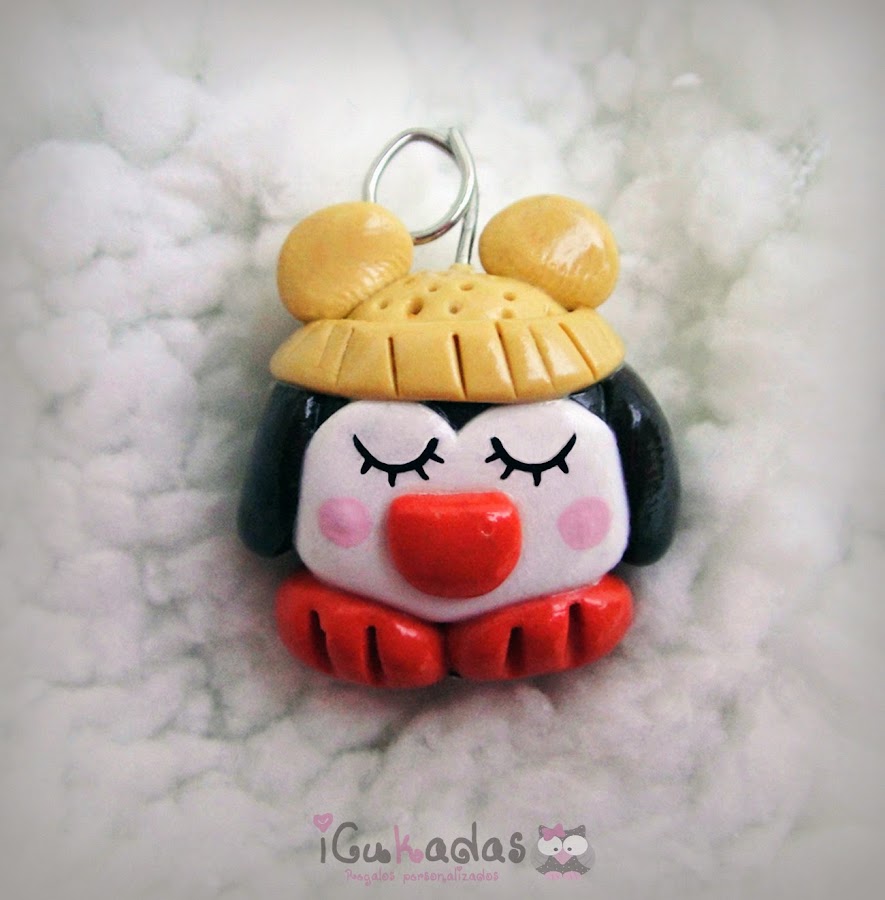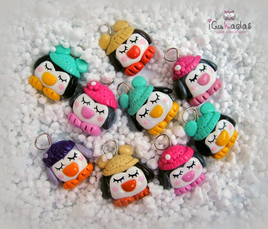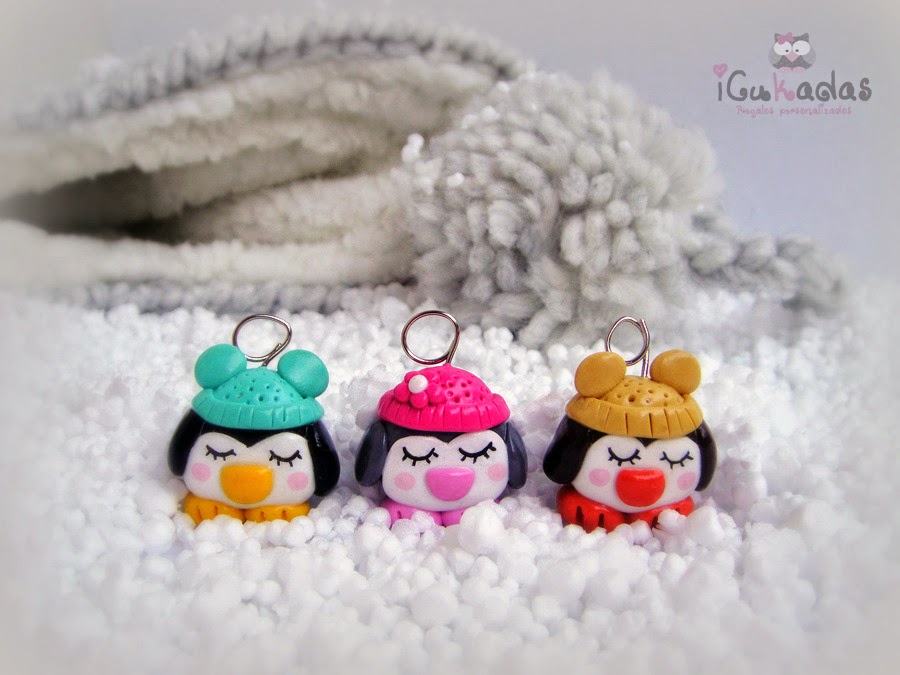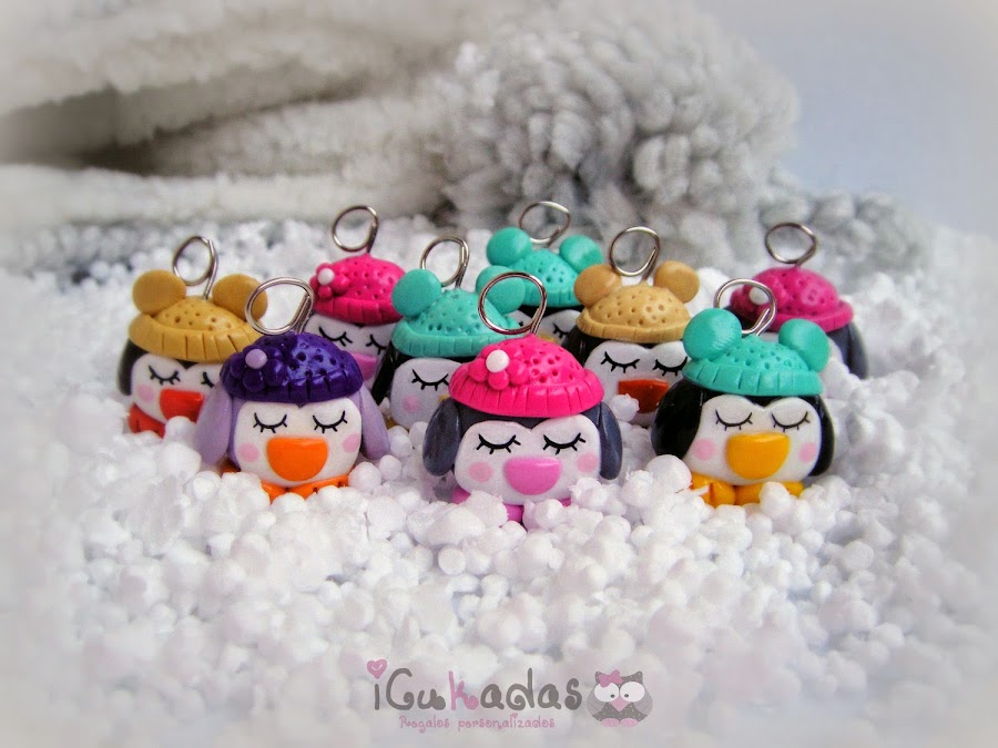 Ya sabéis que son de fimo de unos dos centímetros y medio, y como hace frio llevan sus gorritos y tienen unos buenos coloretes.