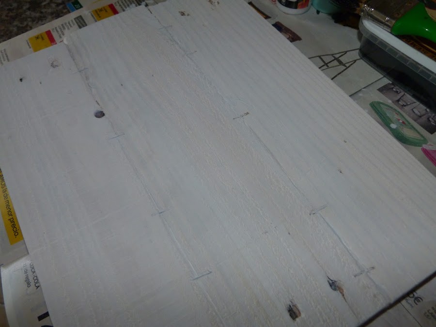 Unas tablas de palet con una manita ligera de pintura blanca, mezclada con agua.
