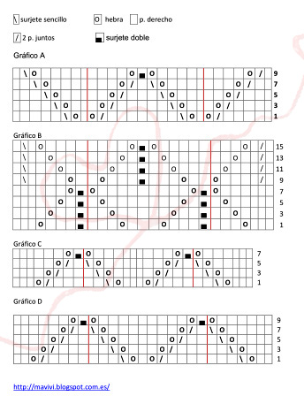 Trabajar según esquema, las vueltas pares se tejen todas de punto revés.