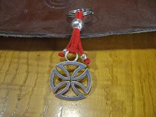 Llavero con cruz y cordón rojo