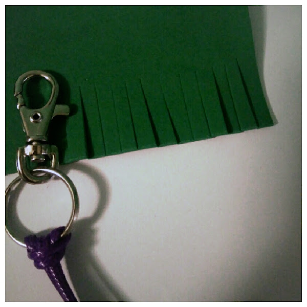 Los materiales que hemos utilizado son goma eva, cuerda de colores, argolla de llavero y silicona caliente.