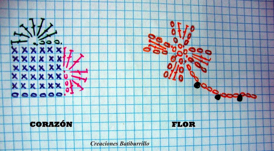Si comparáis el cuadrado central del CORAZÓN con el de la entrada anterior veréis que tiene una vuelta menos de puntos bajos, es debido a que con la lana el tejido crece más y conseguí la forma cuadrada con menos vueltas que con el hilo de crochet. Tendréis que valorarlo en cada caso, dependiendo del tipo de material. Lo importante es formar un cuadrado de lados iguales.