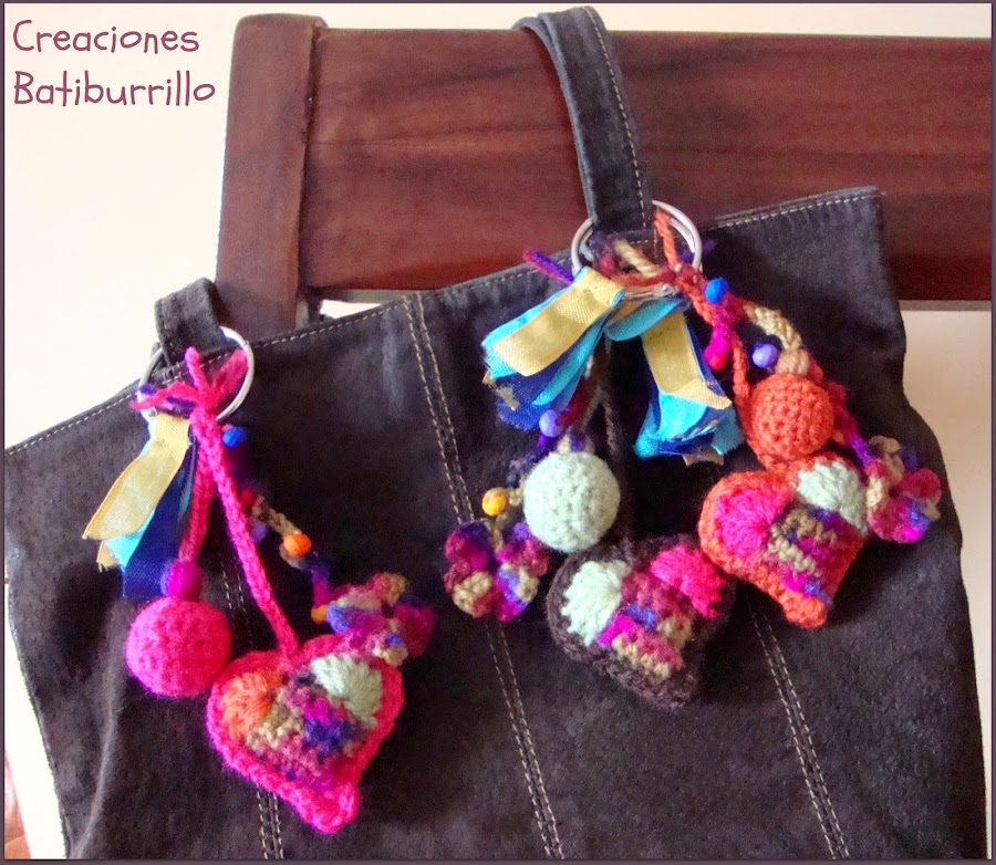 Todo ello va unido con flecos a una arandela con abre-cierra fácil para poder usarlo como llavero o llevarlo colgando, poniendo color donde más nos guste.