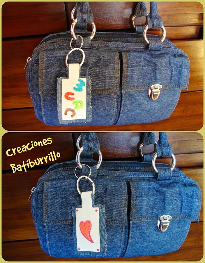 El mío está hecho en polipiel banca sobre tela vaquera, pero si lo hacemos en cuero o polipiel oscura, tenemos un regalo perfecto para hombre.