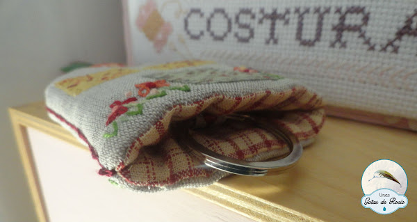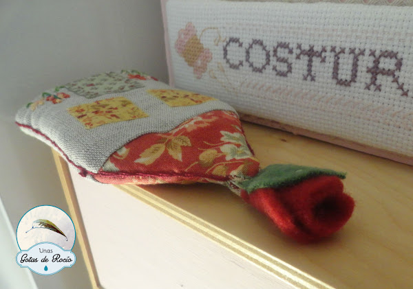 Una rosita de fieltro sirve de tope de la cinta que incluye la anilla para las llaves.