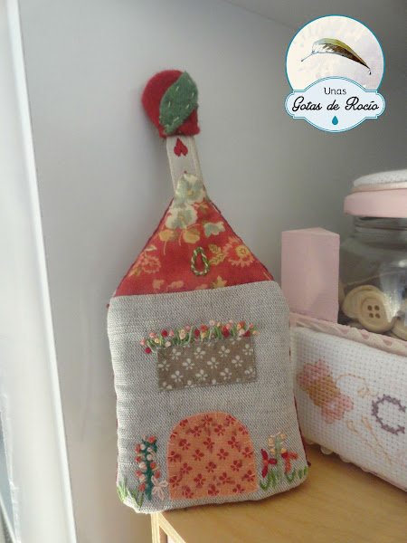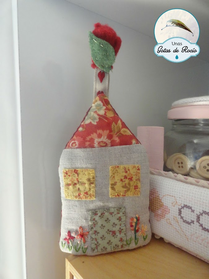 Ambas fachadas de la casita están decoradas con aplicaciones festoneadas y bordados.