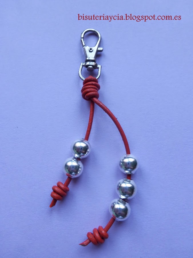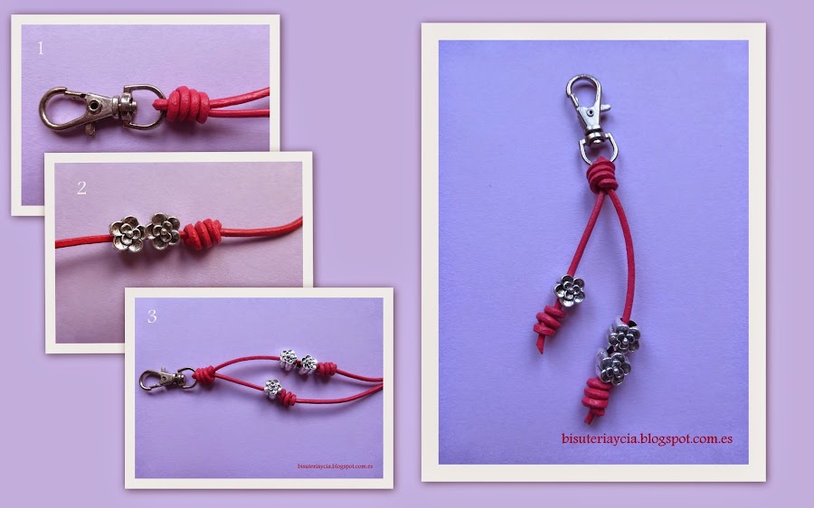 Para hacerlos usaremos cuero, cordón encerado, abalorios (flores y bolitas) y como no un llavero en forma de mosquetón. Vamos a realizarlos en tres pasos.