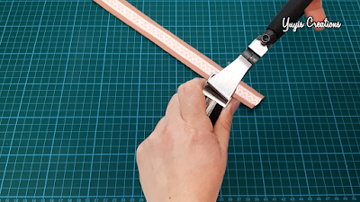 Para hacer el llavero de polipiel, vamos a doblar 1.5 cm de cada lado de forma que nos quede un tamaño total de 3 cm de ancho, tal como ves en la imagen de abajo