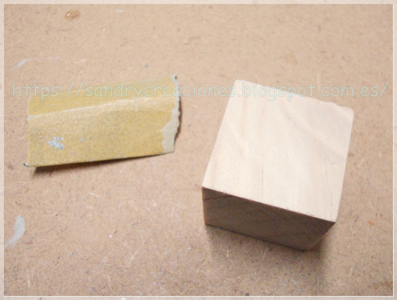 Paso 2 - Lijar el cubo de madera. Si el cubo de madera tiene imperfecciones o es muy irregular le pasamos un poco de lija fina por toda su superficie.