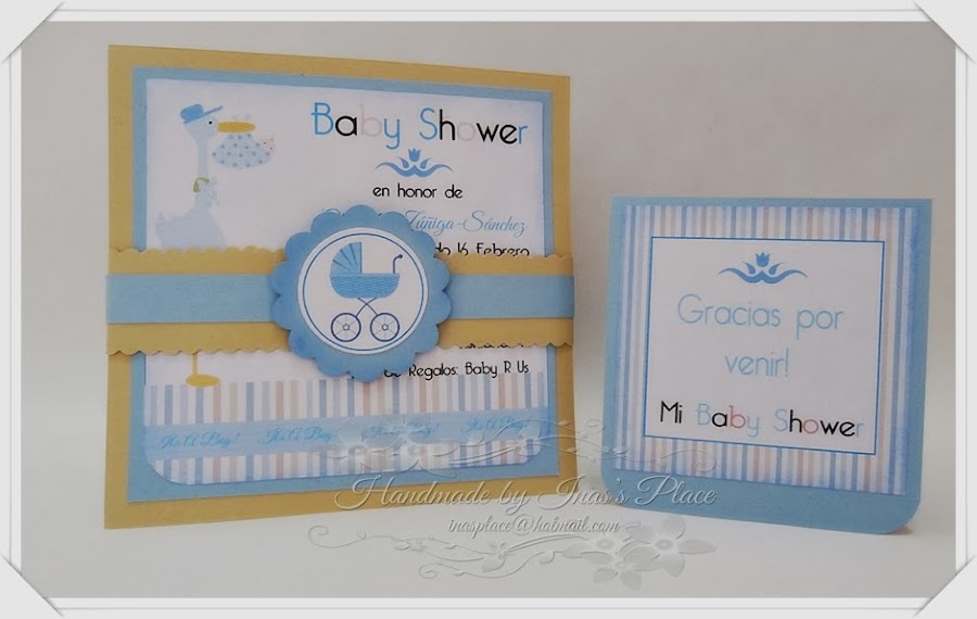 Para cerrar la semana hoy les propongo una invitación de Baby Shower con motivo de cigüeña que es un elemento muy usado para esta actividad.Yo la combiné con los colores azul pastel y crema además del papel decorado muy sutil que hace de la invitación una hermosura!!