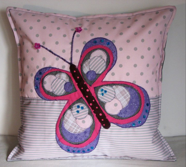 El Cojín Mariposa dará un toque especial a cualquier lugar de tu hogar, ya sea en el salón o en la habitación...Está confeccionado en tela rosa de lunares gris y otra de rayas grises y rosa y una mariposa que cuenta con detalles brillantes que le dan un lindo toque al cojín.