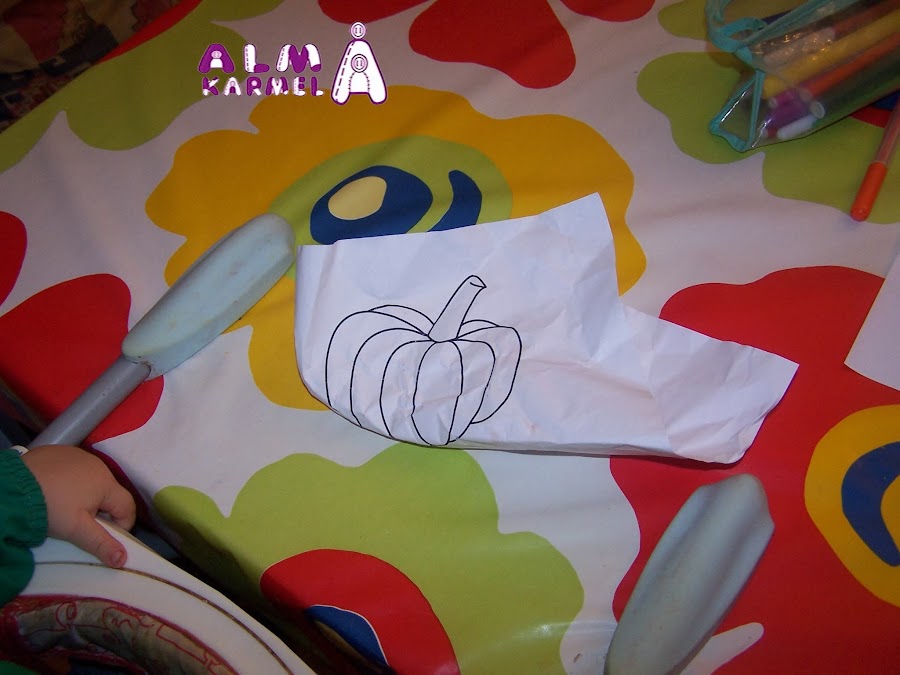 Después de mancharse los dedos, decidieron que querían cambiar a los rotuladores, y el dibujo elegido fue una calabaza.