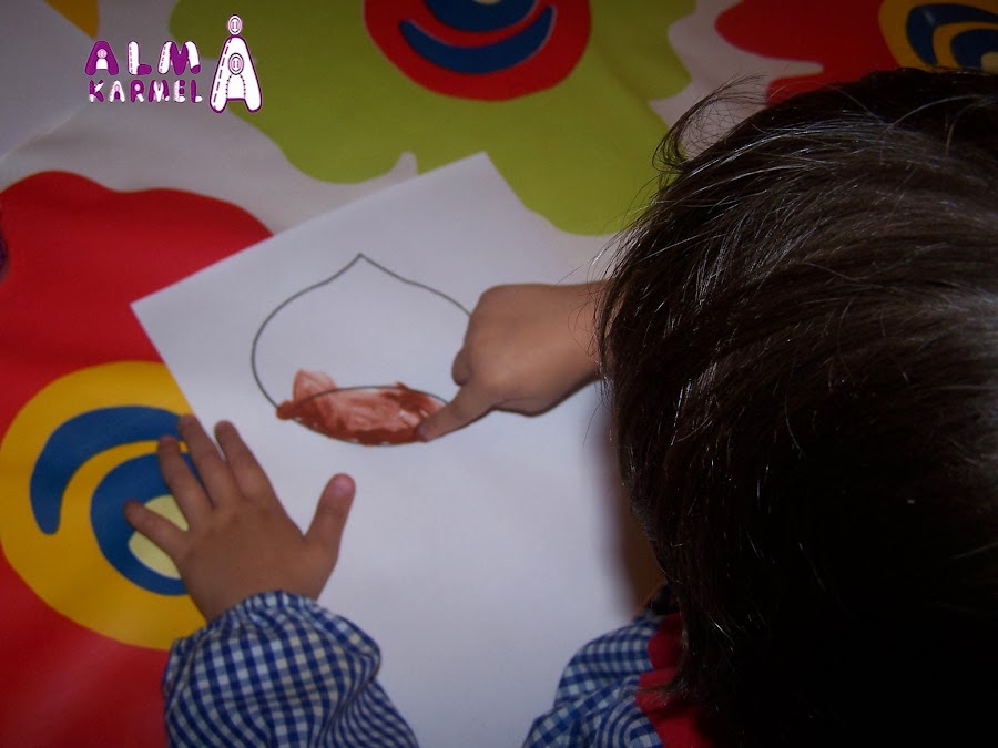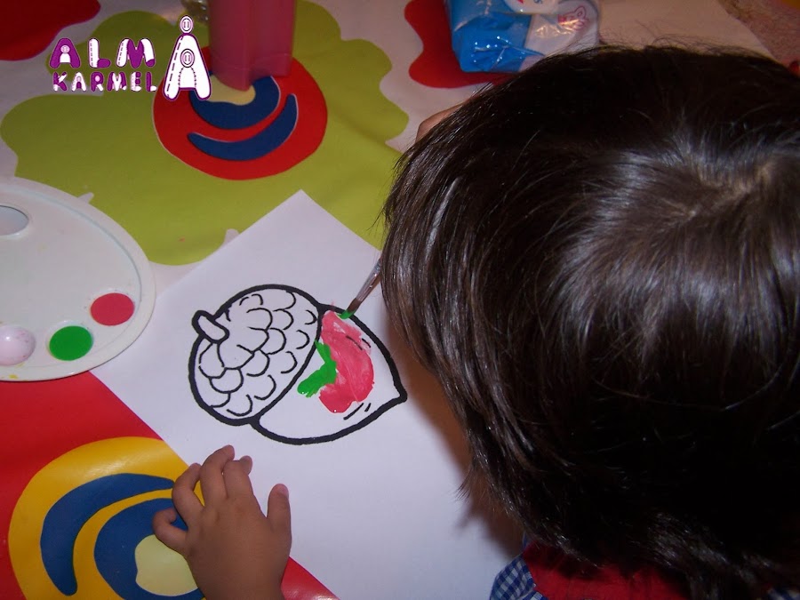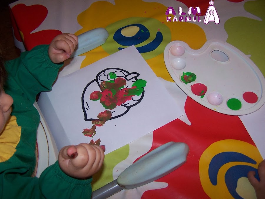 El primer dibujo que hicieron fue una bellota, depués una naranja y una mandarina, eso sí de muchos colorines.