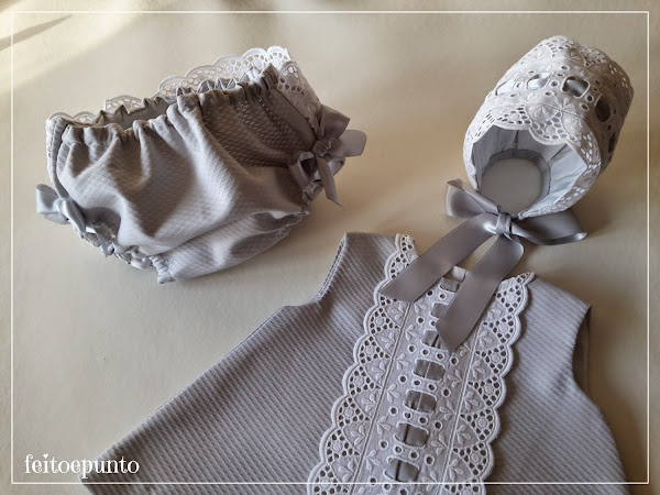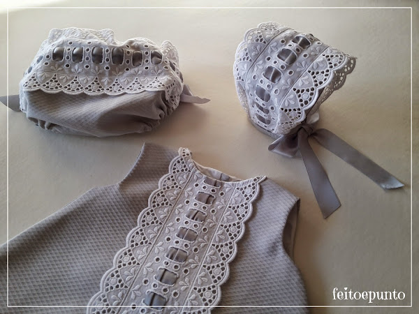 Fijaros que bonitos los complementos... la puntilla bordeando la cara de los niños queda preciosa!