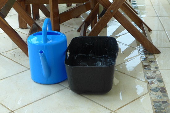 Y como el agua de lluvia es tan buena para las plantas, aquí ando yo como loca recogiéndola, porque me da pena que se pierda...