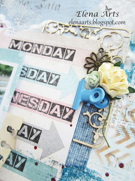 I want to share with you a Lo with my prima Gala, as you have already realized is a protagonist of my latest works. Her face is so fresh and adorable that the page has been created by itself :) The background paper is by Maja Design that I love their soft and pastels tones, also there are papers by 7 Dots Studio, gesso, stencils, stamps, inks, chipboard, flowers... everything that I like.