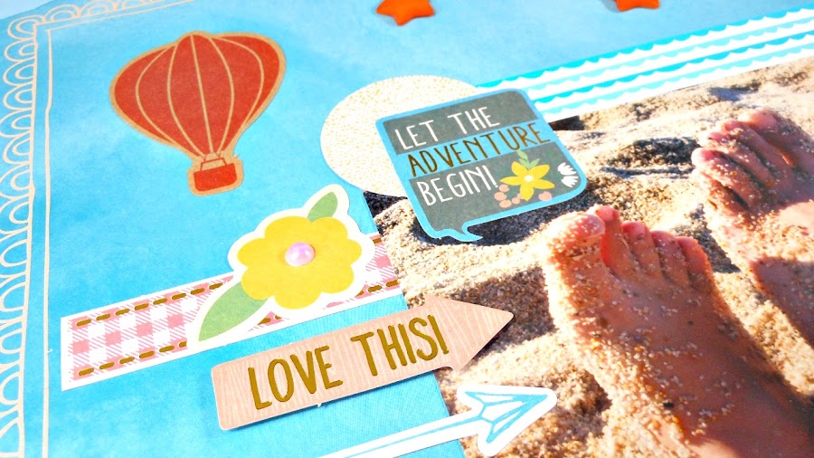 La idea (y mis ganas) nacieron a partir de un reto que presentó Amara, en el blog "A tendiña do Scrap". La idea era hacer un LO veraniego, cuyo requisito era tener un cosido, falso cosido, etc.